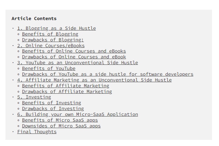 Simplify Long-Form Content Creation: Automatically generate a table of contents for easy navigation through your articles.